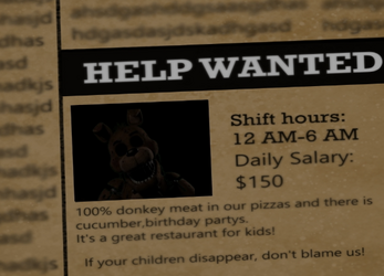 JUST STAY A NIGHT FOR SECURE AND CHECK RESTAURANT ANDWHEN YOUR JOB DONE GET YOUR 150$ (NO TAMPERING ANIMATRONICS)
